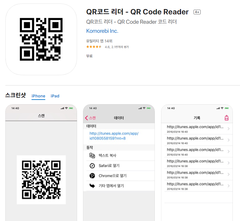 아이폰: https://apps.apple.com/kr/app/qr%EC%BD%94%EB%93%9C-%EB%A6%AC%EB%8D%94-qr-code-reader/id1080558159