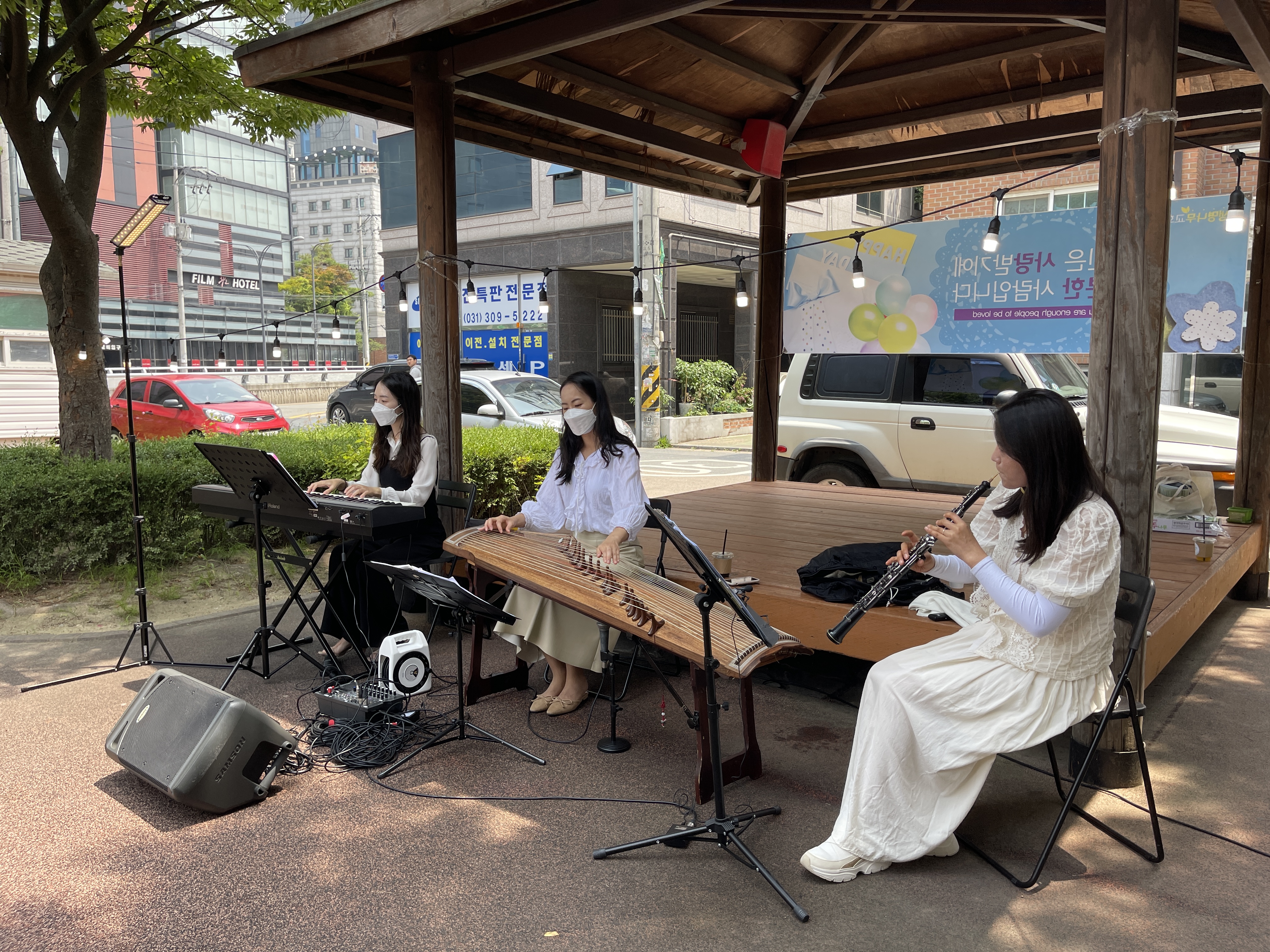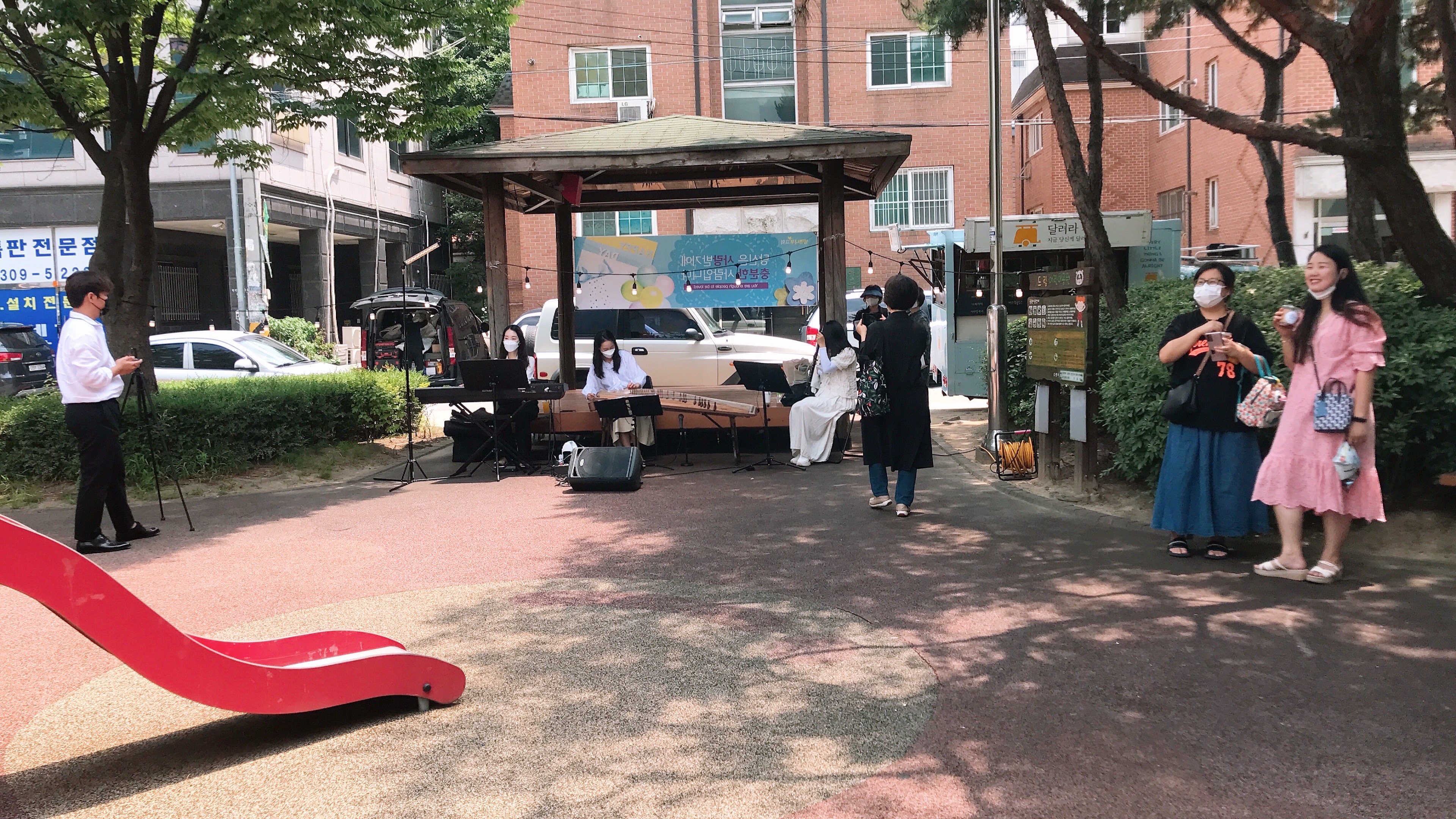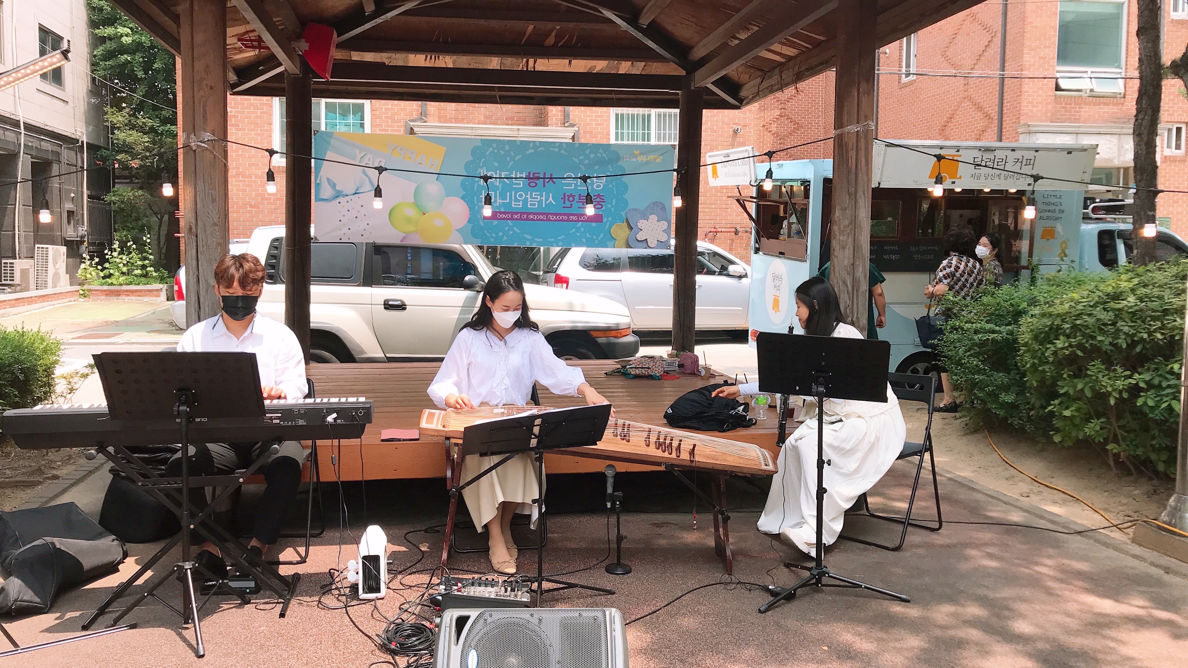 앙상블 토브팀은 제대로 장비가 구비되지 못한 상황이었는데도 프로답게 멋진 공연을 보여주셨습니다. 주변에 지나다니시는 분이 많지는 않으셨지만 한명의 관객을 위해서도 쉬지 않고 연주해주셨고 낮은 모습으로 주민들을 멋진 음악으로 섬겨주셨습니다. 마치고 떠나올때 한 어르신께서 조금 전에 집 안에서 들으셨다며 너무 잘한다고 박수를 쳐주셨습니다.