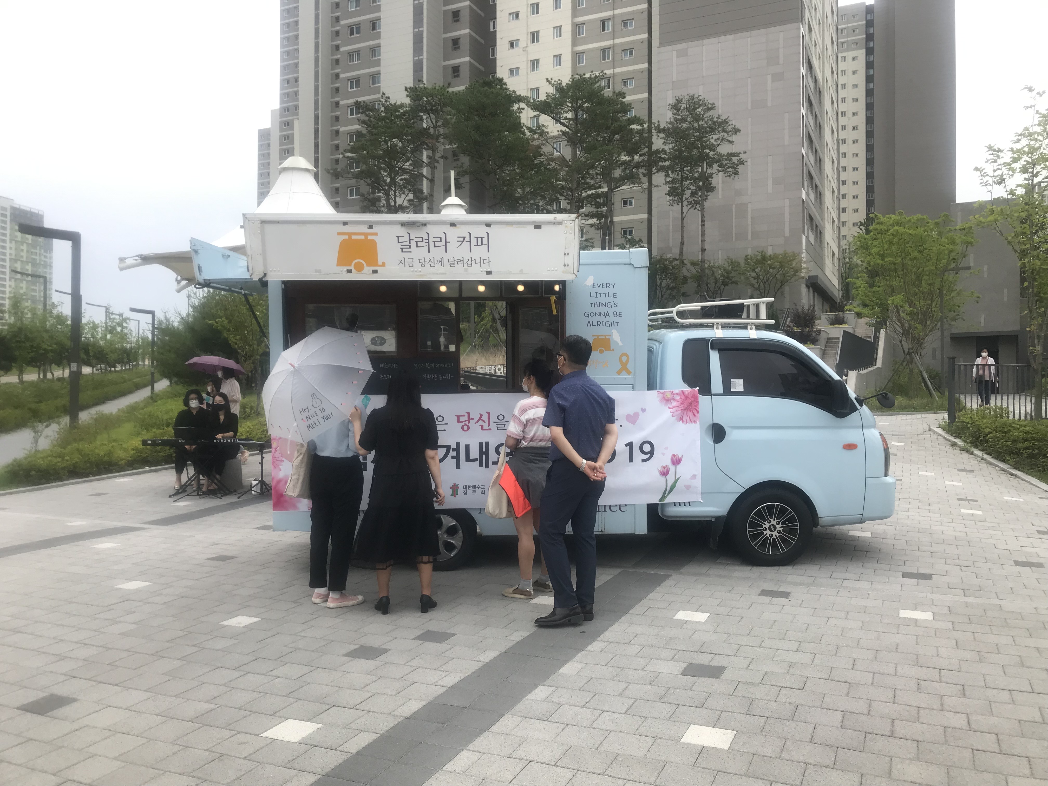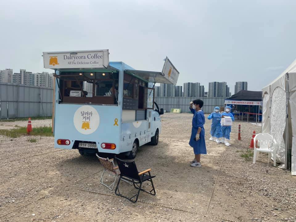 세 번째 교회까지 진행한 후 코로나19로 사회적 거리두기 단계가 4단계로 격상됨에 따라, 감염의 우려가 있어 교회들을 찾아가는 사역을 중단을 했습니다. 그 뒤 코로나 상황이 수그러들지 않아 이 사역은 하지 못하지만 교회가 이 위기에 할 수 있는 일을 찾다, 선별진료소에서 힘들게 고생하시는 의료진들을 돕기로 결정하고 그 더운 날씨에 더운 방호복을 입고 임시 진료 텐트에서 고생하시는 곳을 찾아가 커피 서비스를 하는 것으로 방향을 바꾸었습니다.